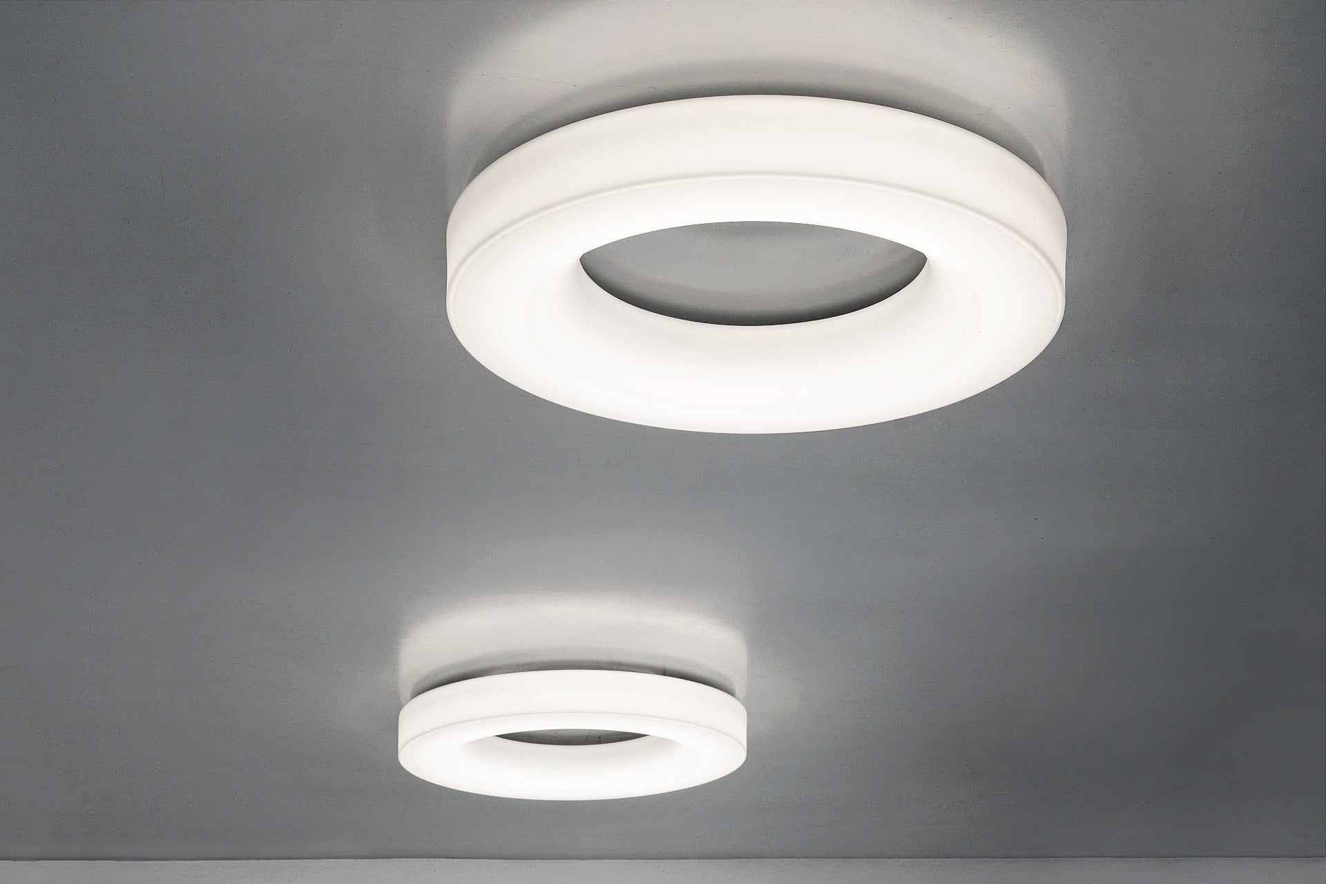 Saturn este un inel masiv de lumină. Difuzorul opal, emite o lumină ambientală uniformă și performantă. Geometria esențială o face ideală în spațiile mari ale arhitecturii contemporane.