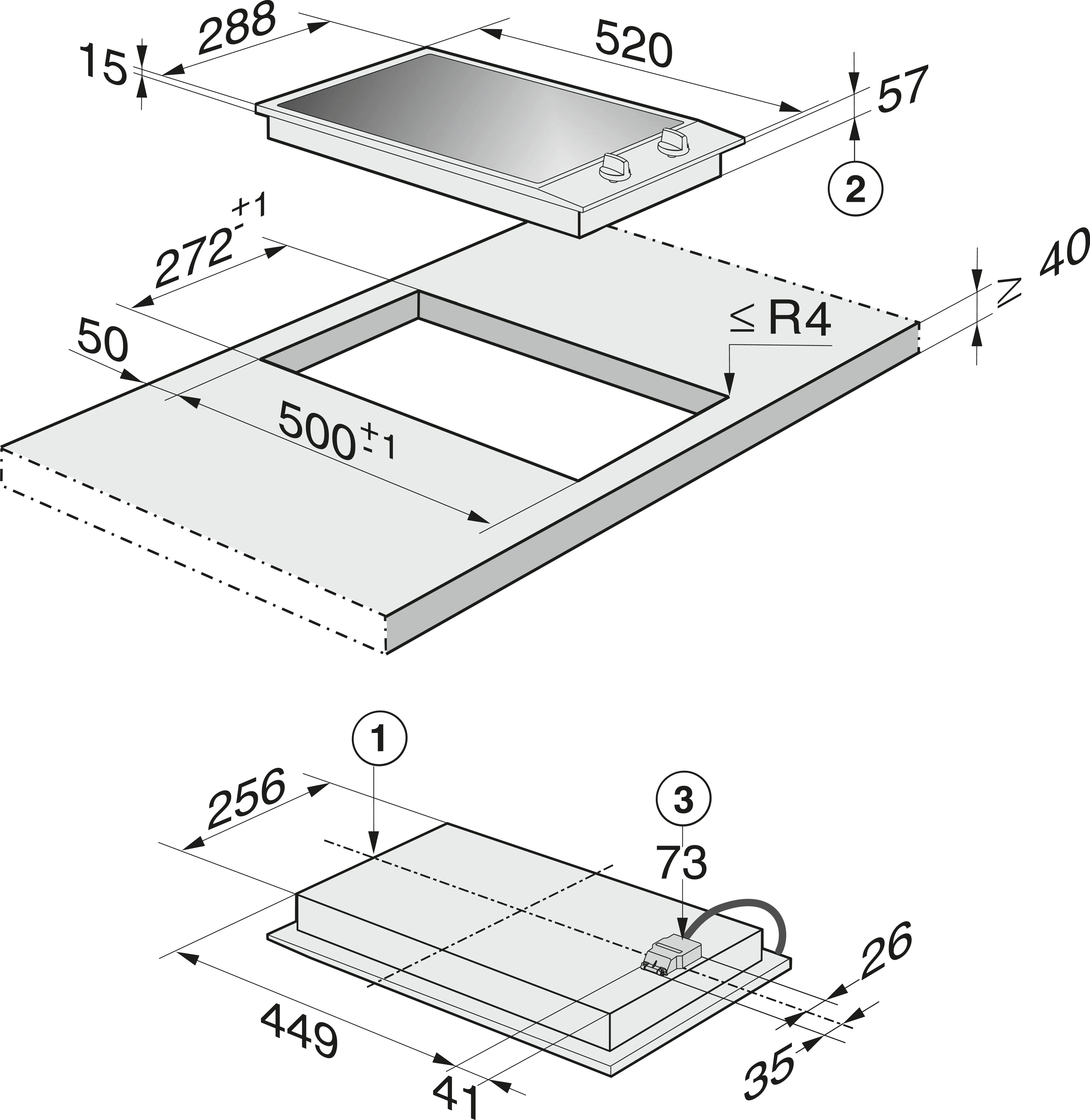 Dimensiuni (Î x L x A) în mm 73 x 288 x 520