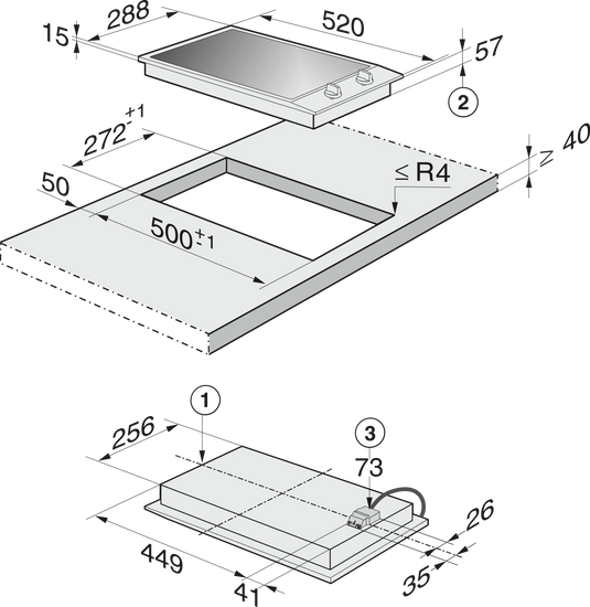 • Design profesional – vitroceramică cu ramă ce măsoară 288 mm 288 mm lățime