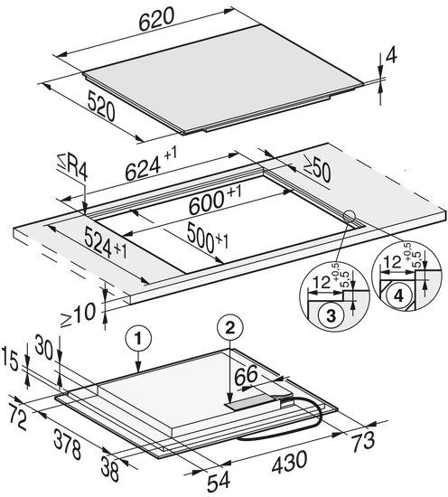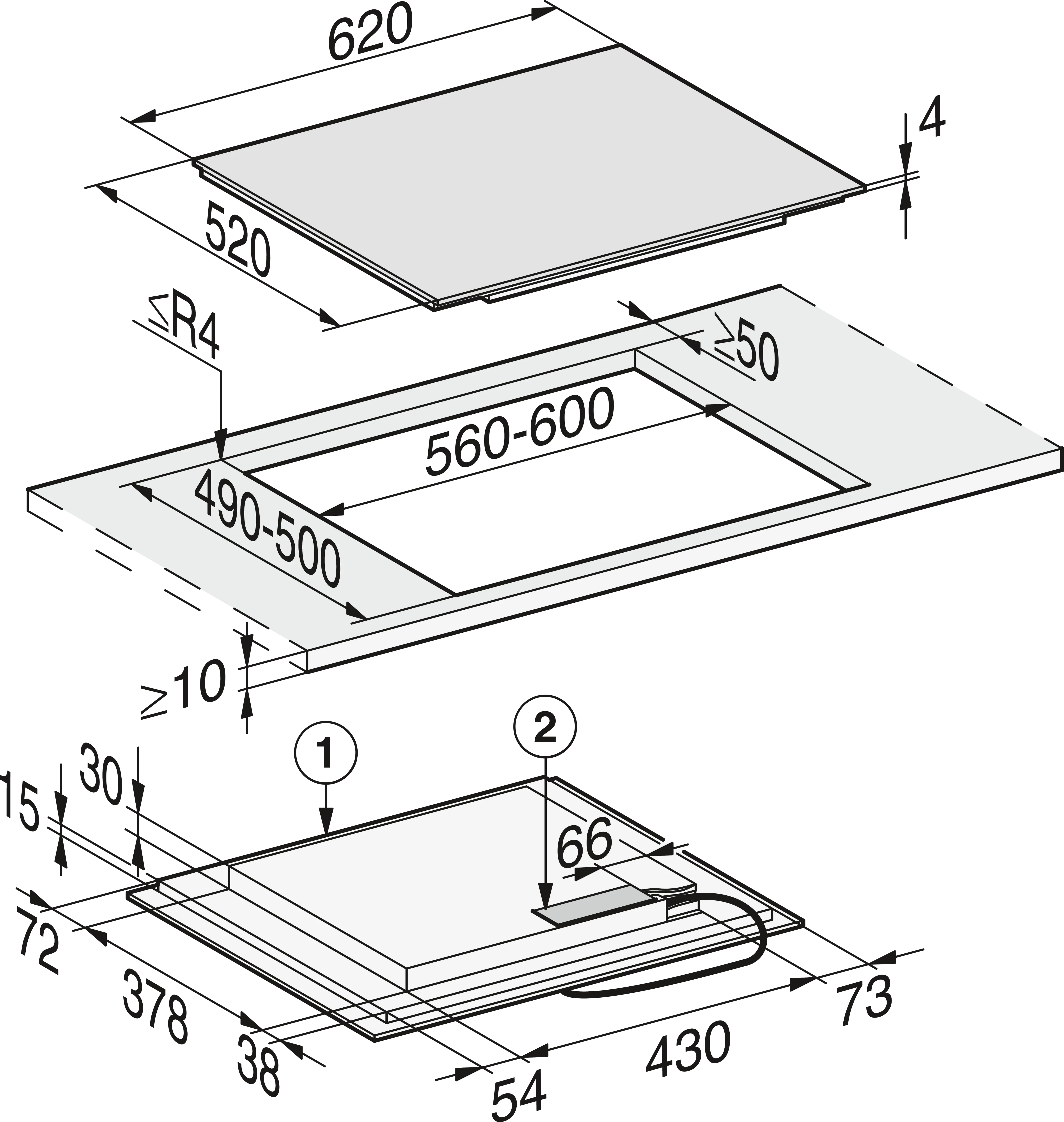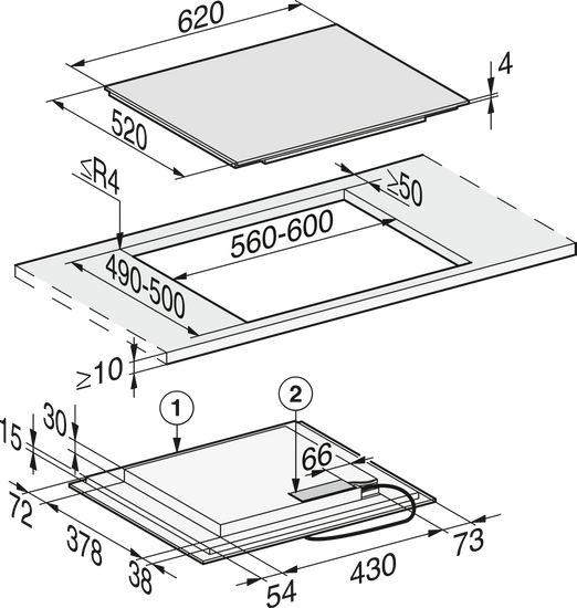 - O lățime de 620 mm pentru instalare la suprafață sau la nivel