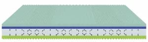 1. strat de confort in Freeze EcoMemory 5 cm cu profil “masaj” 5 zone diferentiate (pe latura de iarna), se modeleaza sub formele corpului in baza greutatii si a temperaturii corpului.