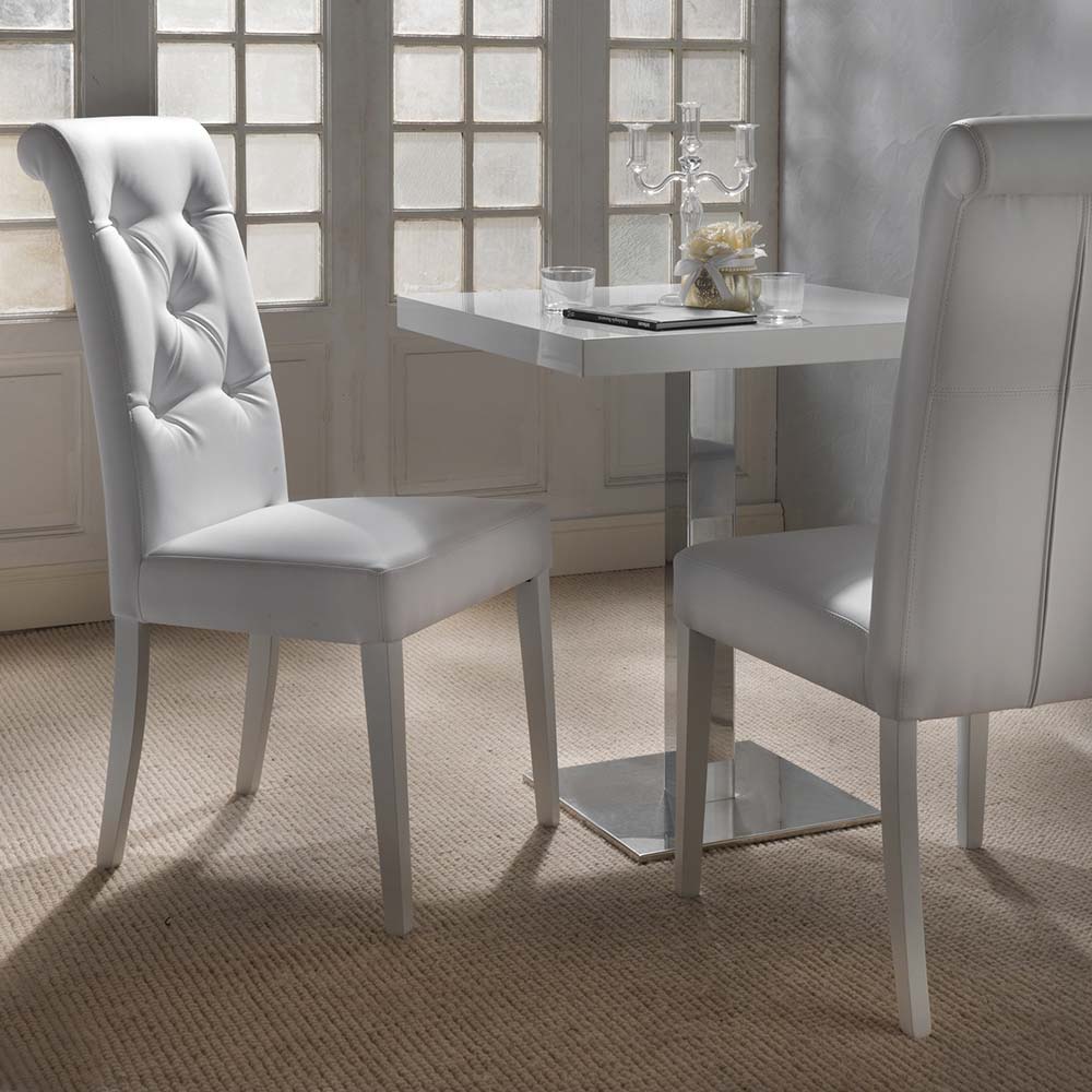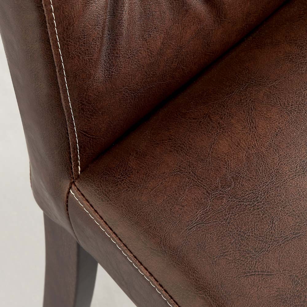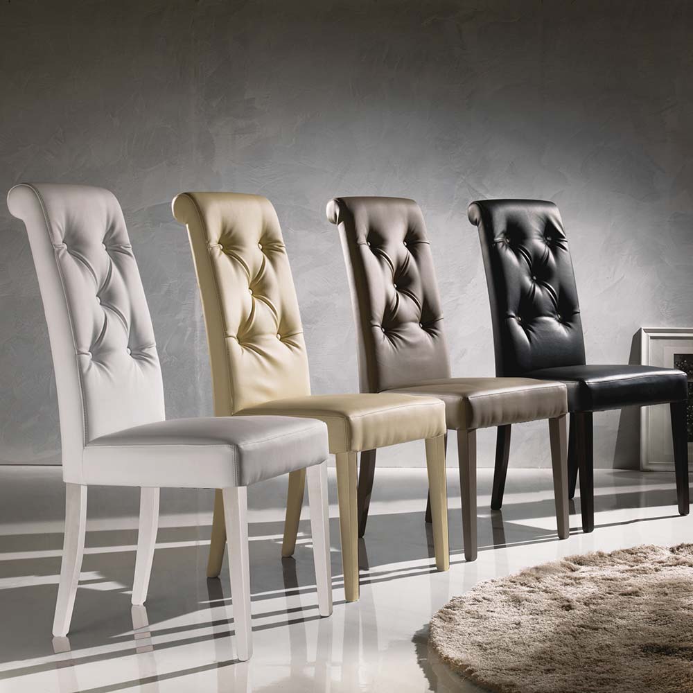 Scaun tapitat cu Ecopiele disponibil in mai multe culori. Cusaturile spatarului il fac potrivit si pentru amenajari clasice.