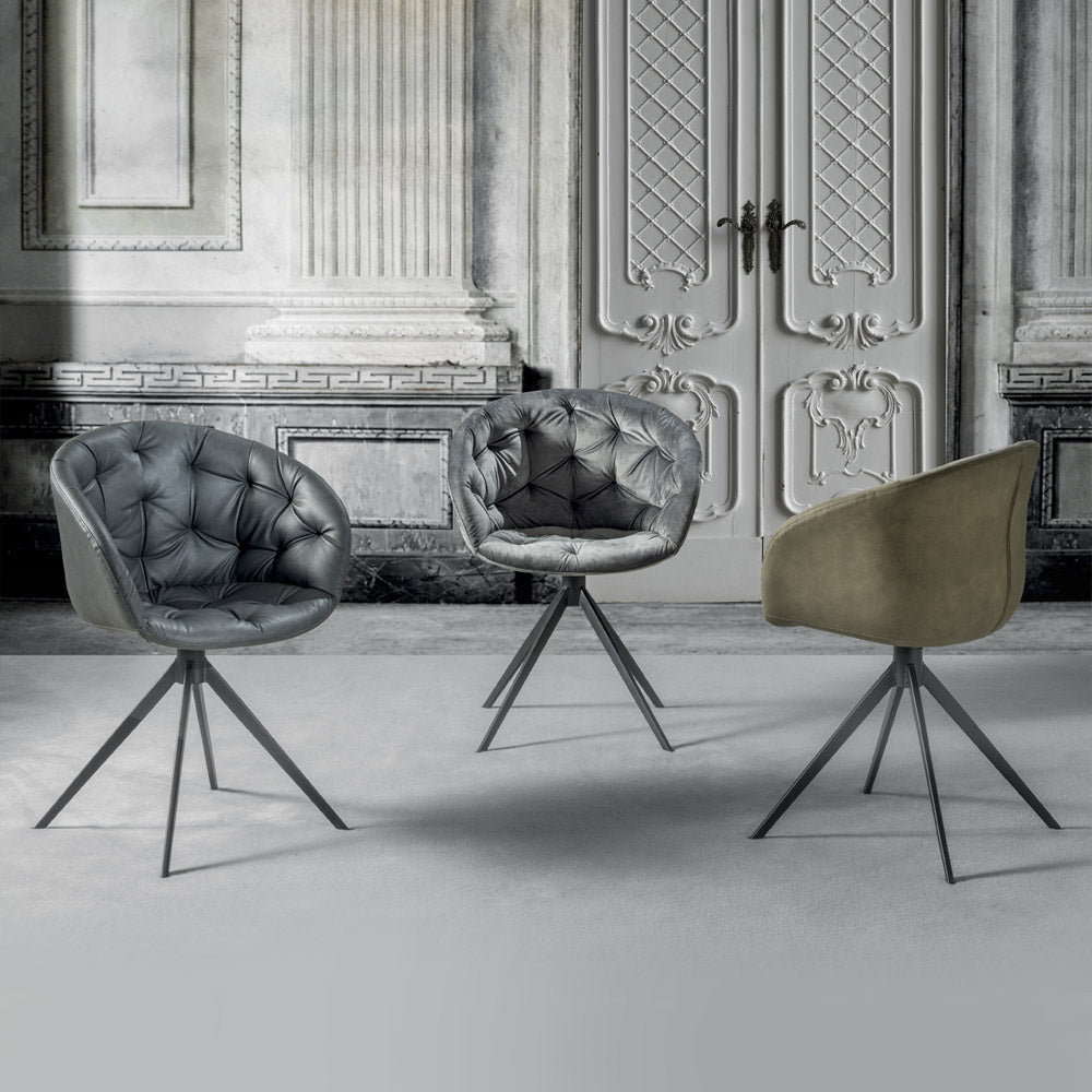 Scaun tapitat cu Ecopiele sau catifea. Disponibil in mai multe culori.