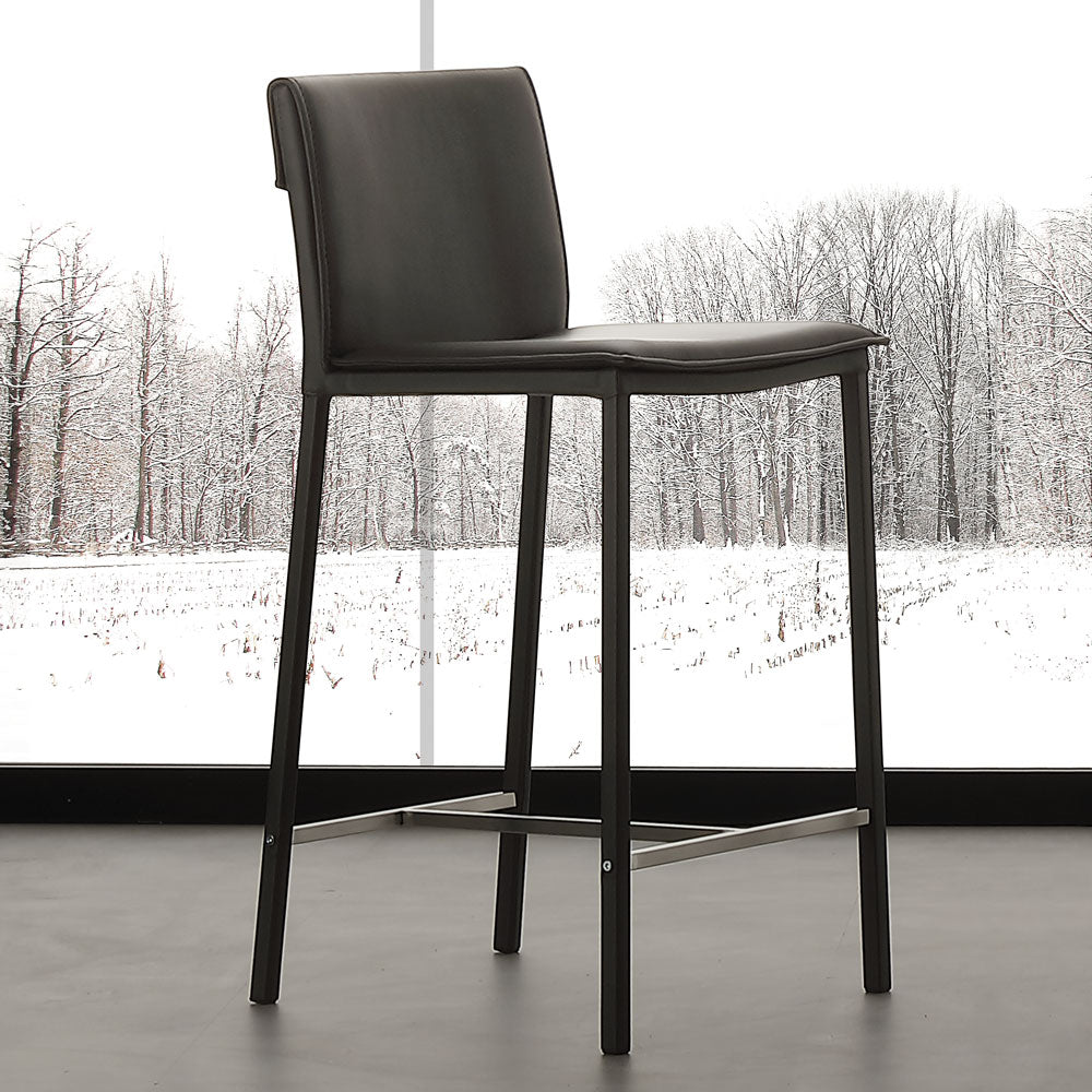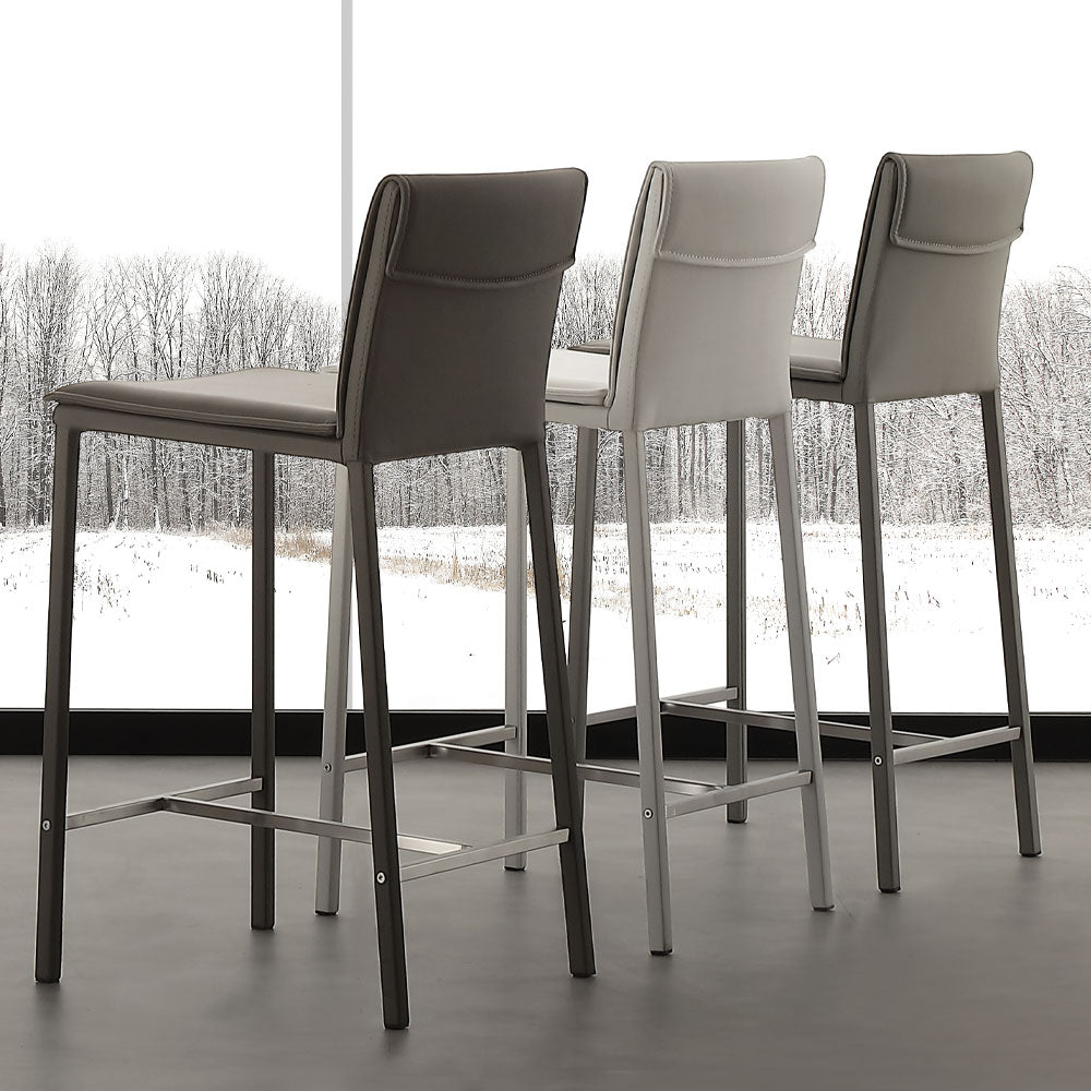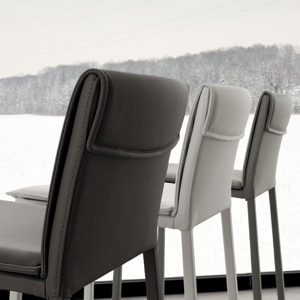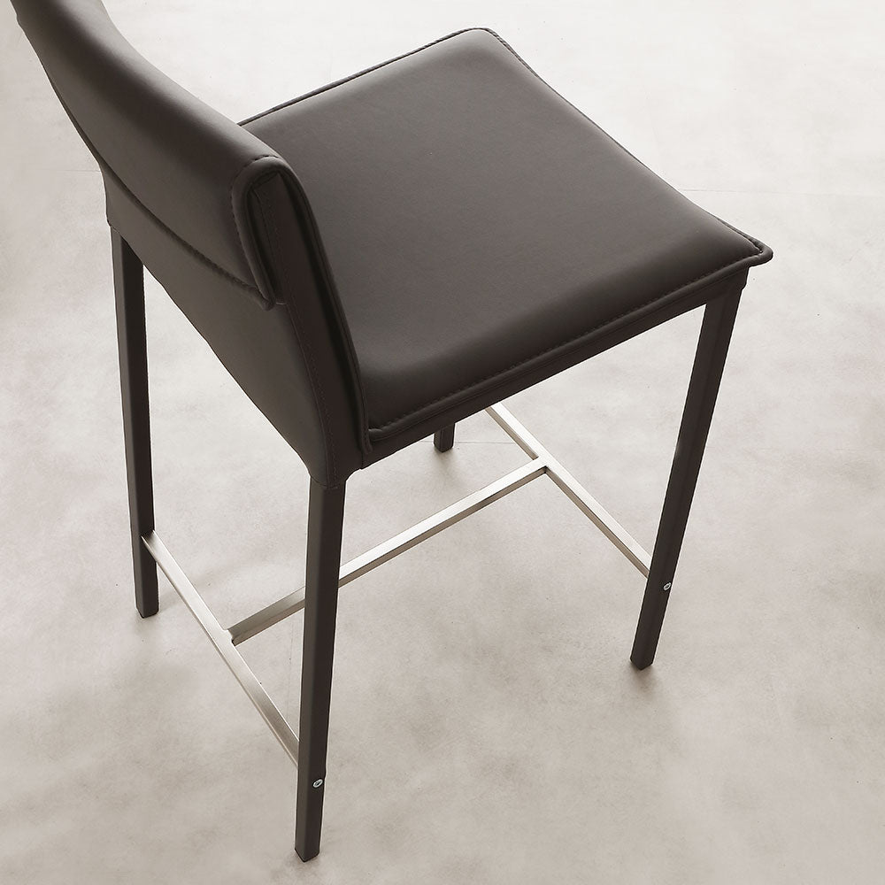 Scaun de bar Vogue, structura realizata din metal imbracat in acelasi material cu sezutul si spatarul,sezut si spatar imbracat in piele ecologica disponibila in mai multe culori.