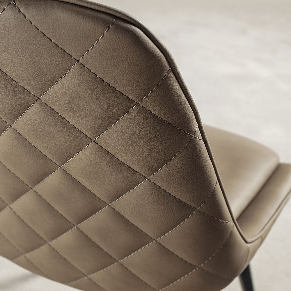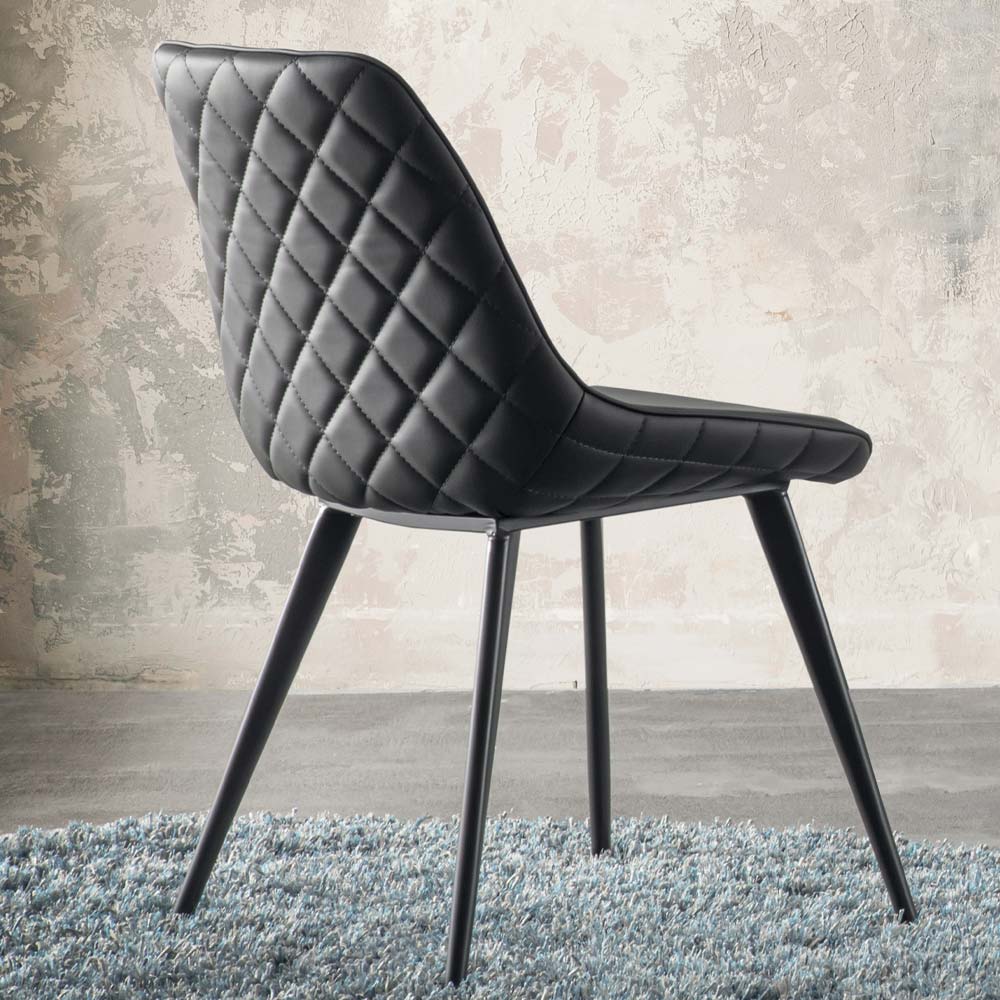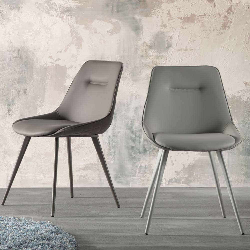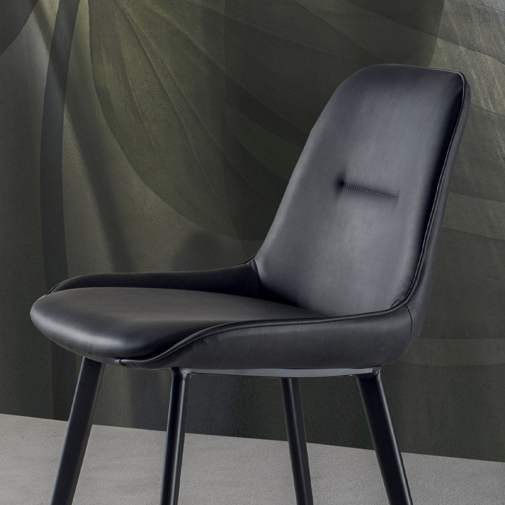 Scaun tapitat cu piele ecologica disponibil in mai multe culori si picioare de metal.