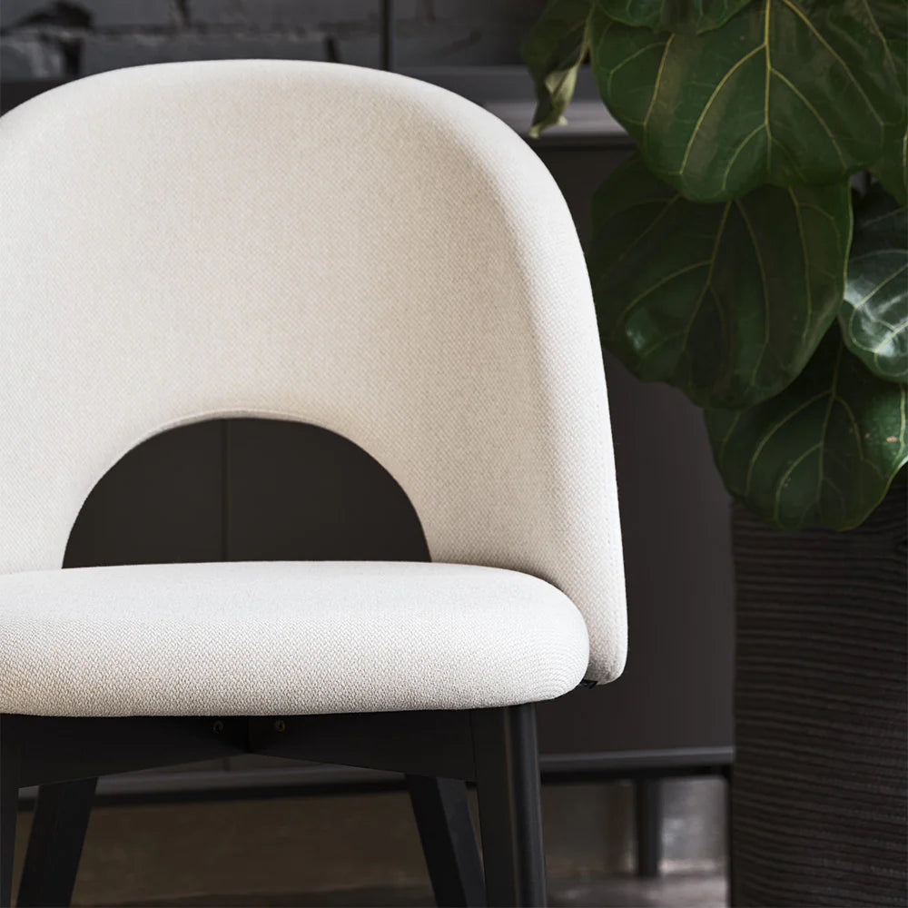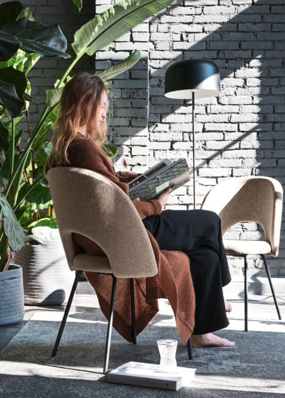 Luminat de o gaură mare, spătarul este învăluitor și moale. Cu un design empatic care face aluzie la o aromă a anilor 1950, amintește de scaunele de fast-food, fiind atât practice, cât și confortabile.