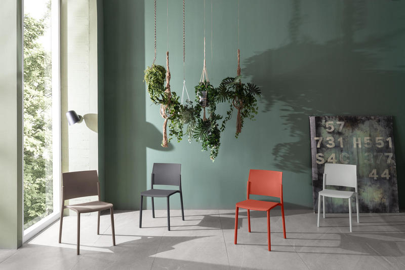 Scaun Venus cu spatar si sezut din polipropilena si picioare metalice. Disponibil in mai multe culori.