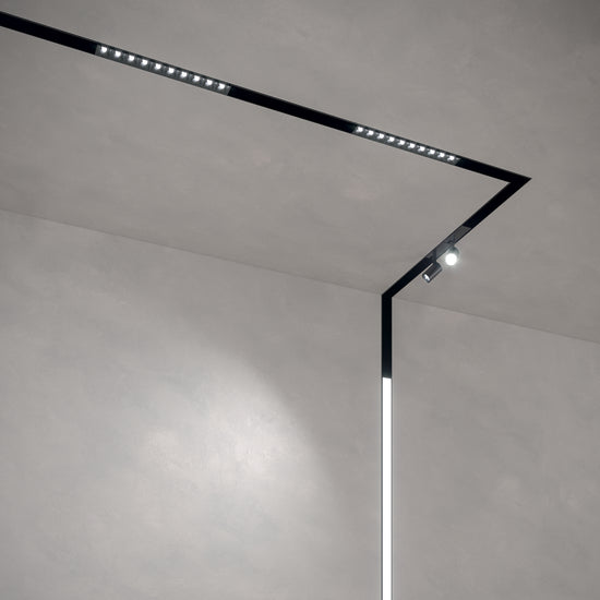 Sistem din aluminiu extrudat compatibil cu o gamă largă de corpuri de iluminat fixate mecanic. Disponibil în negru și în modurile de instalare montate la suprafață, suspendate sau încastrate în tavanele din gips-carton.