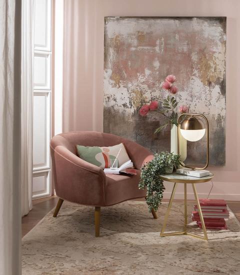 Pictură realizată cu tehnica picturii acrilice pe pânză și cu aplicare de foiță de aur. O fantezie vibrantă inspirată de arta abstractă care creează atmosfere de farmec sofisticat. Toate tablourile pictate cu tehnica acrilic pe pânză sunt unice și realizate manual.