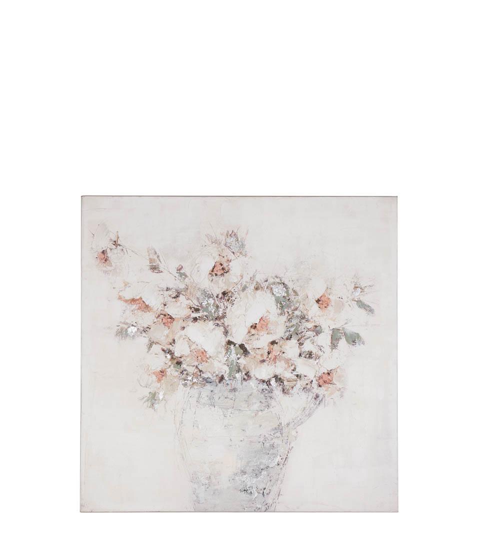 Tablou realizat cu tehnica acrilica pe panza. Model floral și culori moi pentru un cadru rafinat, ideal pentru mobilierul în stil rustic modern.