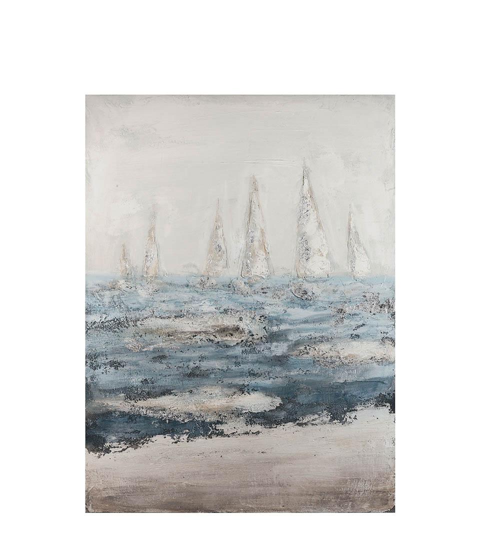 Tablou pictat cu tehnica acrilica pe panza. Un motiv marin cu nuanțe de albastru și gri ca gheață.