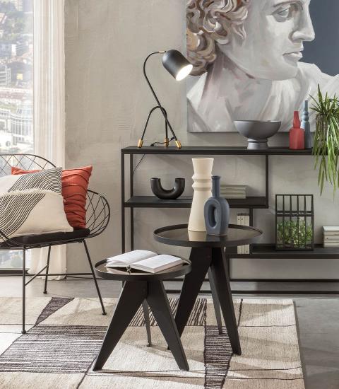Lampă de masă din metal negru. O piesă de mobilier care va fi inima mediului dumneavoastră datorită detaliilor sale aurii și formelor moderne. Perfect pentru cei care iubesc modelele de inspirație urbană.