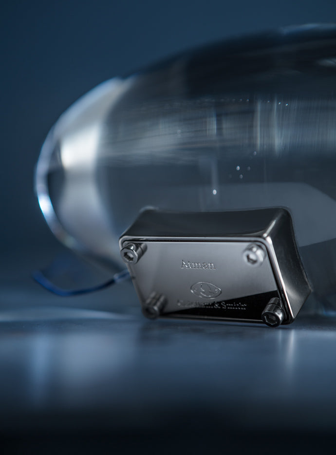 Atman a fost primul experiment al lui Enzo Catellani cu o sursă de lumină LED, o idee care i-a venit întâmplător sau poate prin magie. Totul a început cu o călătorie în India, unde a intrat în contact cu intensitatea unei culturi care îmbină tăcerea și haosul, spiritualitatea și mizeria. Aici Enzo Catellani a descoperit pietrele sfinte ovale și a decis să recreeze aceeași formă folosind sticlă. Numele „Atman” provine dintr-un cuvânt sanscrit care înseamnă „suflet”.